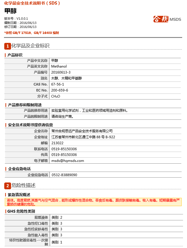 一書一簽編寫規范GB/T 16483-2008《化學品安全技術說明書 內容和項目順序》