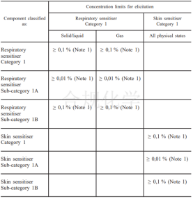 歐盟CLP法規對于EUH208危害分類有明確要求,首先EUH208的組分分類閾值(GCL)不同于致敏危害分類(H317和H334),為現有H317和H334分類閾值(GCL值)的1/10。此外,在歐盟如果該致敏物質有特定濃度限值(SCL),則EUH208的分類閾值為該SCL的1/10。這相當于是在現有的致敏危害分類外,再額外附加一個輕微的致敏危害分類,以起到對致敏危害的警示告知作用。