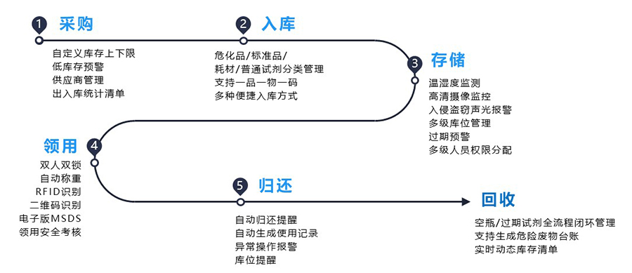 關(guān)于RMS實(shí)驗(yàn)室化學(xué)品智能管理系統(tǒng)RMS系統(tǒng)采用契合實(shí)驗(yàn)室特點(diǎn)、前后臺(tái)分離極簡(jiǎn)易用、軟硬件結(jié)合無人值守等設(shè)計(jì)理念,結(jié)合先進(jìn)的智能硬件和信息化軟件技術(shù),聯(lián)動(dòng)溫濕度儀、電子門禁、精準(zhǔn)天平、攝像頭、掃描槍等硬件,通過內(nèi)置管理規(guī)范和智能邏輯、人臉身份驗(yàn)證、自助領(lǐng)用歸還、全流程數(shù)據(jù)自動(dòng)記錄等功能,實(shí)現(xiàn)了實(shí)驗(yàn)室試劑耗材全生命周期的動(dòng)態(tài)管理,并自動(dòng)生成統(tǒng)計(jì)各類分析報(bào)表,保障實(shí)驗(yàn)室試劑耗材的規(guī)范化、安全化和精準(zhǔn)化管理。